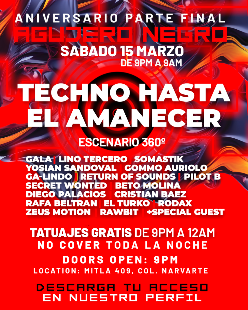 GALA | LINO TERCERO | SOMASTIK | YOSIAN SANDOVAL | GOMMO AURIOLO | GA-LINDO | RETURN OF SOUNDS | PILOT B | SECRET WONTED | BETO MOLINA | DIEGO PALACIOS | CRISTIAN BAEZ | RAFA BELTRAN | EL TURKO | RODAX | ZEUS MOTION | RAWBIT + SPECIAL GUEST
